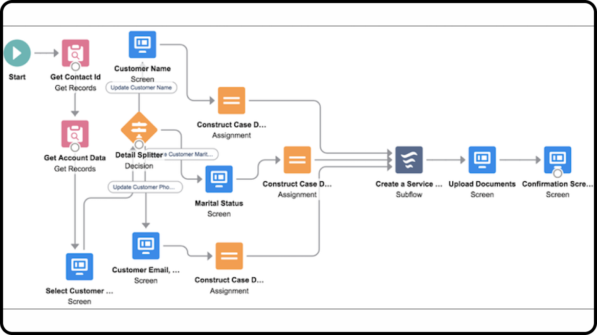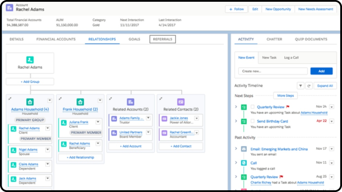 Automated manual workflows using built-in Financial Services Cloud tools.